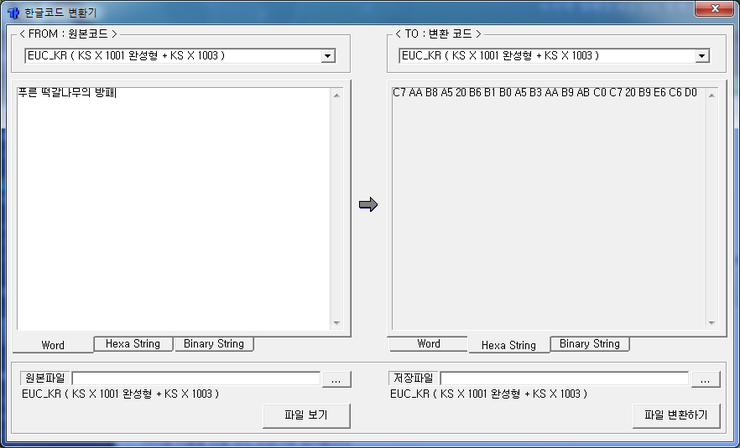 준비물은 자료실에 있는 hex edit과 한글코드 변환기입니다