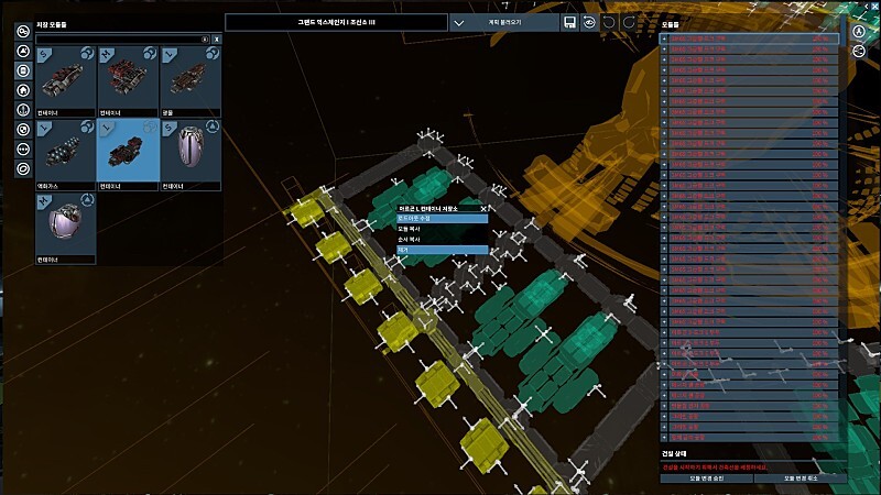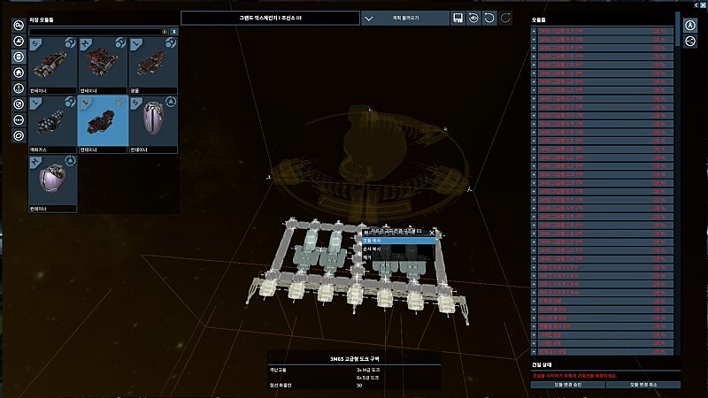 가장 먼저 '메인퀘스트' 깨기 용으로 만들었던 기본 도킹장을 '우클릭-모듈제거' 로 지워버린 다음