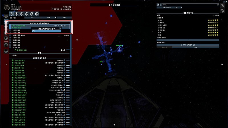 관리자를 배치해줘야 스테이션이 일을 한다. 물품 생산이라던지 채광명령이라던지 등등...