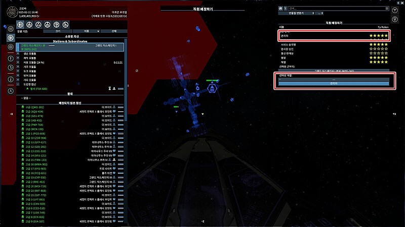 이제 관리인 배치가 끝났으니 스테이션의 생산 관련해서 조절해줄 몇가지가 있다.