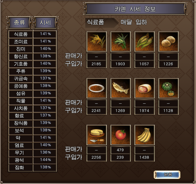 ※ 입하월이란: 대항해시대의 교역품은 총 19종류로 분류되며 각 종류별로 재고가 채워지는 달이 정해져있습니다.