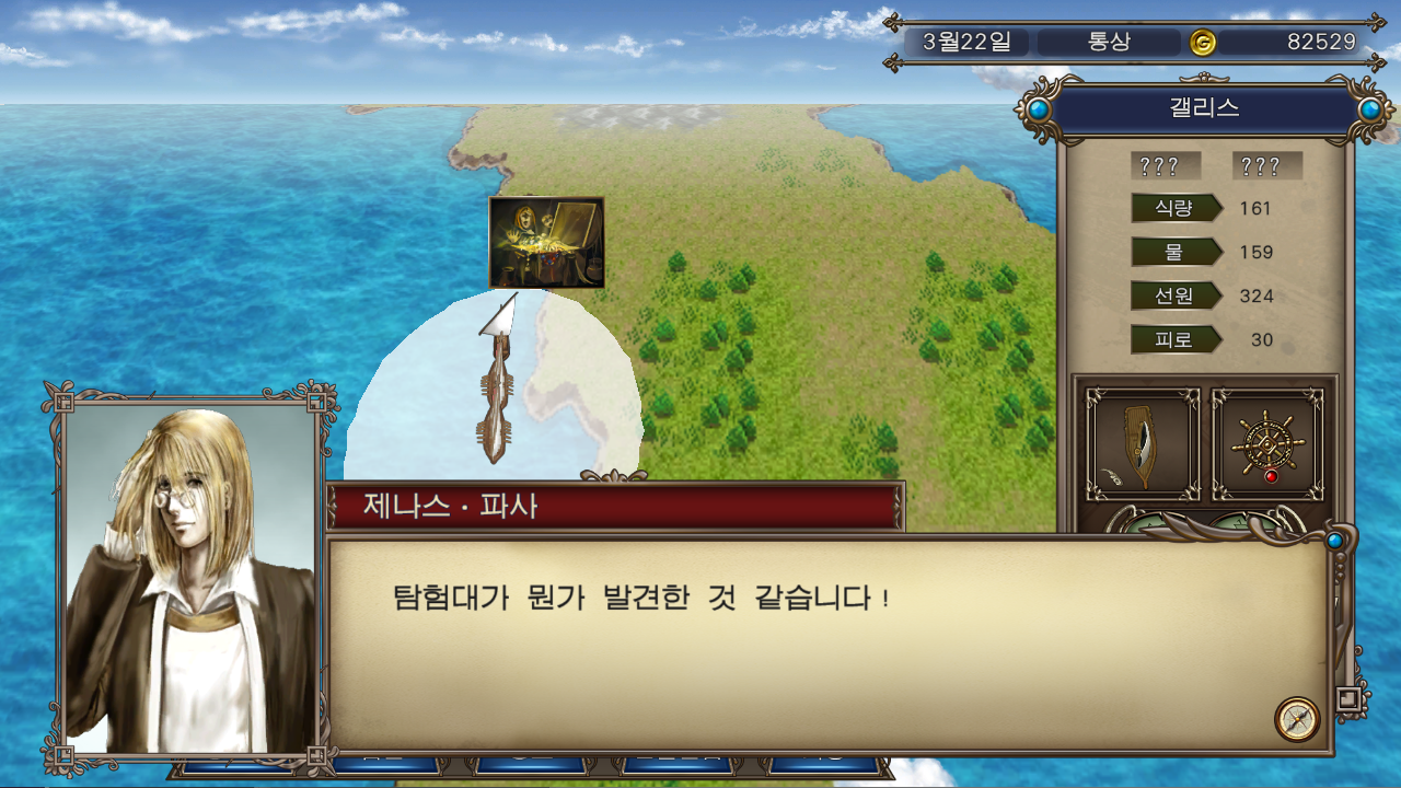 원양탐색에서는 배의 속도나 지속력을 시험하게 됩니다. 탐색선으로는 카락이나 바크가 무난하며 승함 인원은 최소한으로, 물자 창고는 많으면 많을수록 좋습니다. 돛은 사각형으로, 재해 대책으로 추가 장갑을 장착해두면 더욱더 좋겠지요. 마지막으로 돛을 조종할 베테랑 항해사를 고용해서 조종법을 마스터하세요!