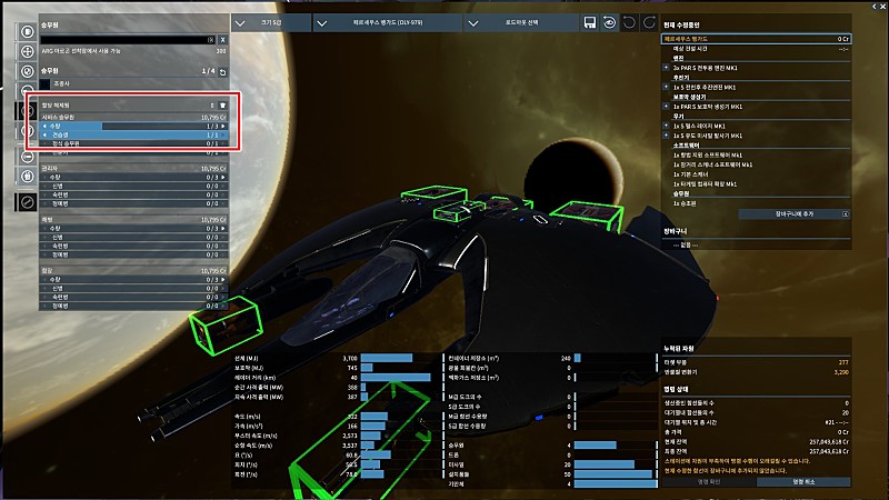 어떻게 넣냐면... 일단 수동으로 선착장에 도킹시켜준 다음, 도킹된 선착장에서 업그레이드를 눌러주자.
