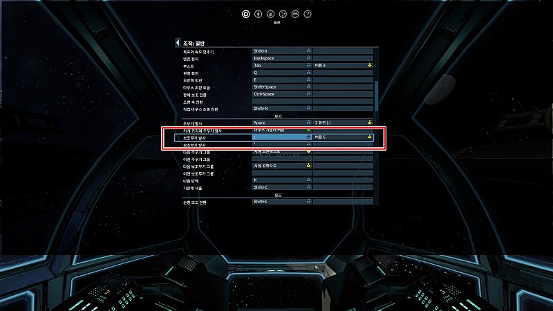 그리고 자신의 키 셋팅에서 보조무기 발사가 어떻게 되어있는지 확인한 다음
