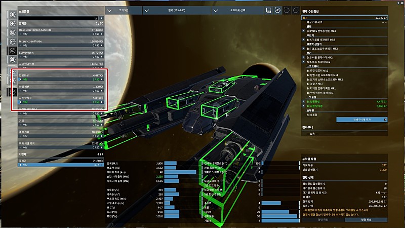 일단 준비물은 저번에 준비한 전투기에 인공위성(고급 아닌 일반 인공위성) 과 자원탐사정 하나씩을 넣어주고